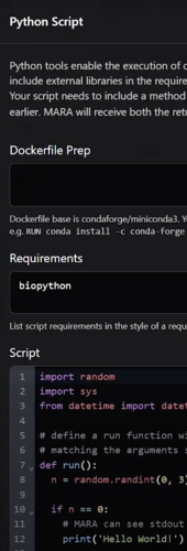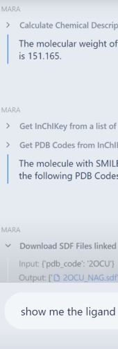 MARA (Molecular Analysis and Research Assistant) is an agentic system for scientific informatics. It sits inside your IT perimeter and gives your team a place to build tools, run workflows, and connect to internal databases without leaving your environment.
