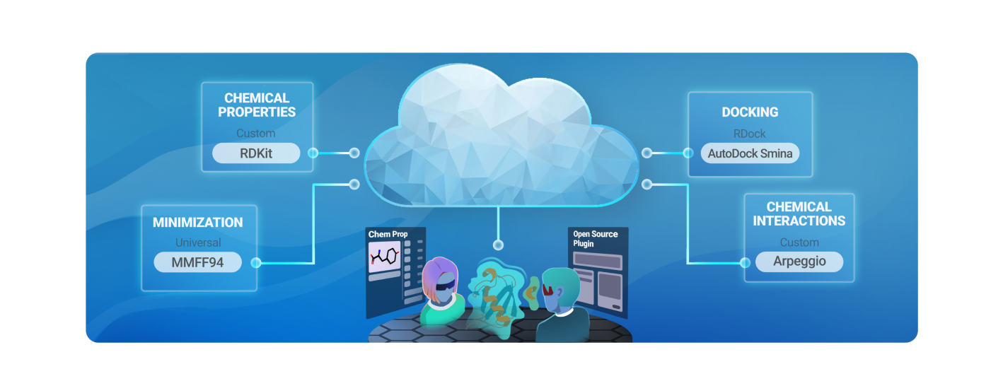 Nanome's plugin infrastructure that enables communication between scientific tools and our collaborative ideation environment.